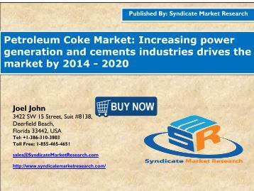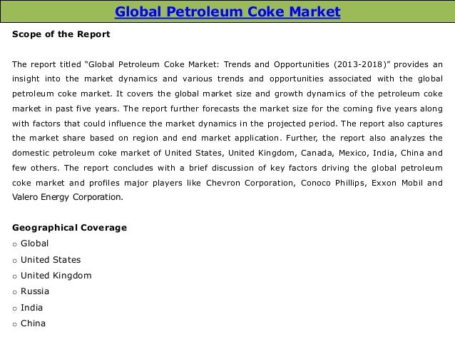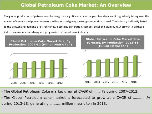 Global market for petroleum coke was valued at USD 13,288.0 million in 2013 and is likely to reach USD 24,117.9 million by 2020, expanding at a CAGR of 8.5% between 2014 and 2020. ... Access Doc