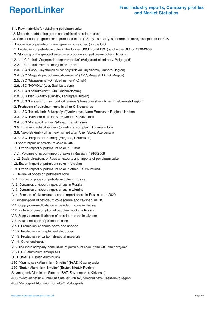 Petroleum Coke (green and calcined) Production, Market and Forecast in the CIS 19th Edition Sample PDF Moscow October, 2016 ... View Document